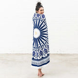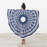 A day at the beach just got better! The gorgeous boho print of this round beach towel will appeal to your carefree side. Make a stylish statement on sizzling summer days whether at the beach, pool, or back yard. Made from a super soft microfiber blend, this roundie beach towel features a white cotton tassel fringe. Generously sized at 59" of rad roundness, you'll look cool wrapped up in or lounging on this affordable, luxe circle beach towel. Add customized embroidery to make this beach towel a custom gift anyone would be happy to receive.