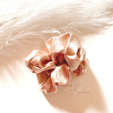 - One Oversized scrunchie in white, or blush
