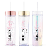 These tumblers are a classy addition to your 'I do' crew parties, bridal showers and bachelorette parties. Easily refillable, the 16 oz. acrylic tumbler’s double wall design is a thermal innovation that keeps your beverage insulated and, as a result, refreshingly cold for longer. With a variety of colors to choose from, be sure to wow your girls with their own personalized drink wear. See our other drinkware designs for more personalized options.