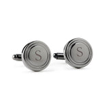 Our handsome gun metal cuff links are a great gift choice for the groomsmen. These round cufflinks feature a gunmetal finish, with elegant details like the ribbed grooves running around the perimetres that frame the single engraved initial, and an easy to use toggle closure. Tres CHIC!
