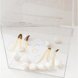 This contemporary acrylic box creates a sophisticated Wishing Well that will complement any colour theme. Not only can it be used as a stylish container to collect wedding cards but also makes an ideal box to store your precious wedding keepsakes following the big day. This acrylic box features a removable lid with mail slot and can be personalized with initials and wedding date.