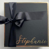 Custom, personalized and luxurious. Our high quality custom boxes are perfect for gifting your thoughtful gifts or one of our custom products including jewelry boxes, robes, tumblers and more. Their versatility make them essential bridal party proposal boxes for your whole squad. Events such as baptisms, birthdays or a "just because" have featured our boxes over and over again to showcase beautiful gifts.