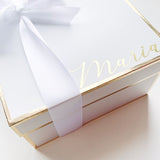 Custom, personalized and luxurious. Our high quality custom boxes are perfect for gifting your thoughtful gifts or one of our custom products including jewelry boxes, robes, tumblers and more. Their versatility make them essential bridal party proposal boxes for your whole squad. Events such as baptisms, birthdays or a "just because" have featured our boxes over and over again to showcase beautiful gifts.