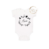 Le Chic Designs baby onesies are cute, stylish and made with so much love for your little one. This personalized onesie is a great gift for new parents and makes for adorable first pictures.