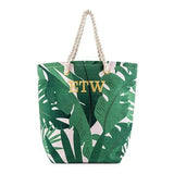 Cotton Canvas Beach Tote Bag- Tropical Leaf