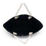 This custom personalized cotton canvas fabric tote bag is the perfect bridal party gift for your wedding day! The black and white geometric print is unique and chic, and its large proportions make it a "tote-ally" useful travel tote bag that will meet all your needs, such as a thank-you gift for your bride tribe, a day at the beach, for work, or even to get groceries. This distinctive, printed cotton canvas tote bag features a snap magnet closure and soft dual rope handles. A custom embroidered monogram initial can be added making it a thoughtful and personalized gift for the bride, your maid of honor, mother of the bride, or any other bridal party member. It is also a unique, reusable gift for your best friend, school teacher, or the special women in your life!