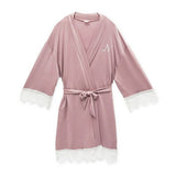 Embroidered Jersey Knit Big Girl Robe Lace Trim detail