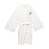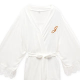 Made from luxury, jersey stretch knit polyester with lace details, this robe is perfect for wedding day festivities or everyday wear making that big girl feel like a princess. Add an embroidered monogrammed initial to make each lightweight kimono extra special. This style will fit most 7-12 year olds.