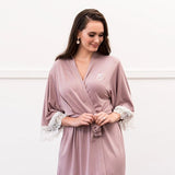 Personalized Jersey Knit Ladies Robe with Lace trim