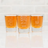 Crafted in a standard bar style you can add a custom touch to any party with a set of personalized clear 1 oz. shot glasses. Vodka, Tequila, or a fancy signature shooter, whatever your drink of choice you can put your own signature on the glass too. Engraved with a name and monogrammed initial, the unique shot glasses make a great gift idea for all kinds of occasions. Birthdays, graduations, anniversaries, or baby showers.