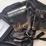 - One satin robe with gold foil script font writing (as shown)