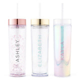 Cute and travel ready, these custom printed plastic tumblers with their sleek rose gold lids and clear straws are a classy, water bottle alternative. Easily refillable, the 16 oz. acrylic tumbler’s double wall design is a thermal innovation that keeps your beverage insulated and, as a result, refreshingly cold for longer. W