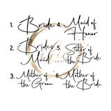 *ENTER TITLE OR NAME/INITIAL IN CUSTOM TEXT BOX (No additional cost for name instead of title, add on initial is 5$ extra)-Please double check your spelling.
